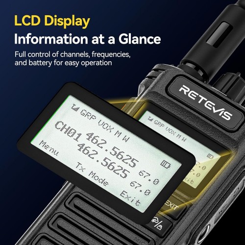 Built-in NOAA weather channels provide real-time weather alerts, while the group call function lets you communicate with multiple radios at once, perfect for large teams or groups